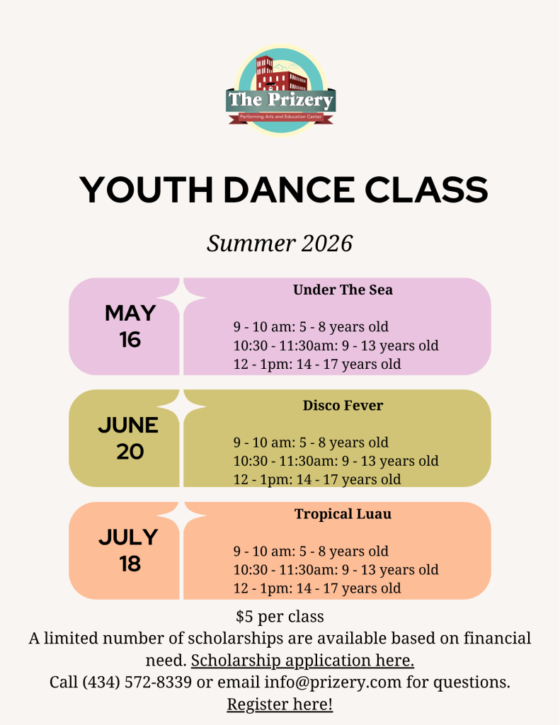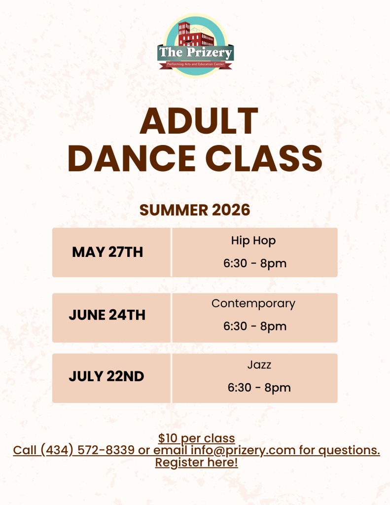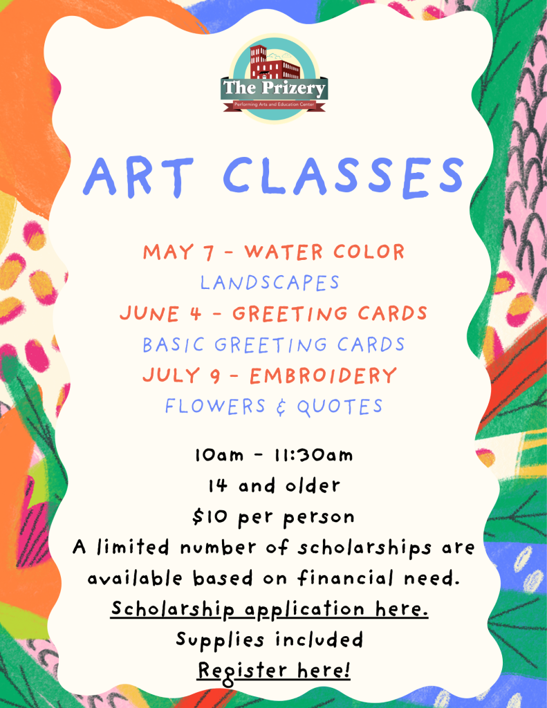 To register for a class please call The Prizery at 434-572-8339 or send us an email for registration help. Registration form and payment will reserve your space.